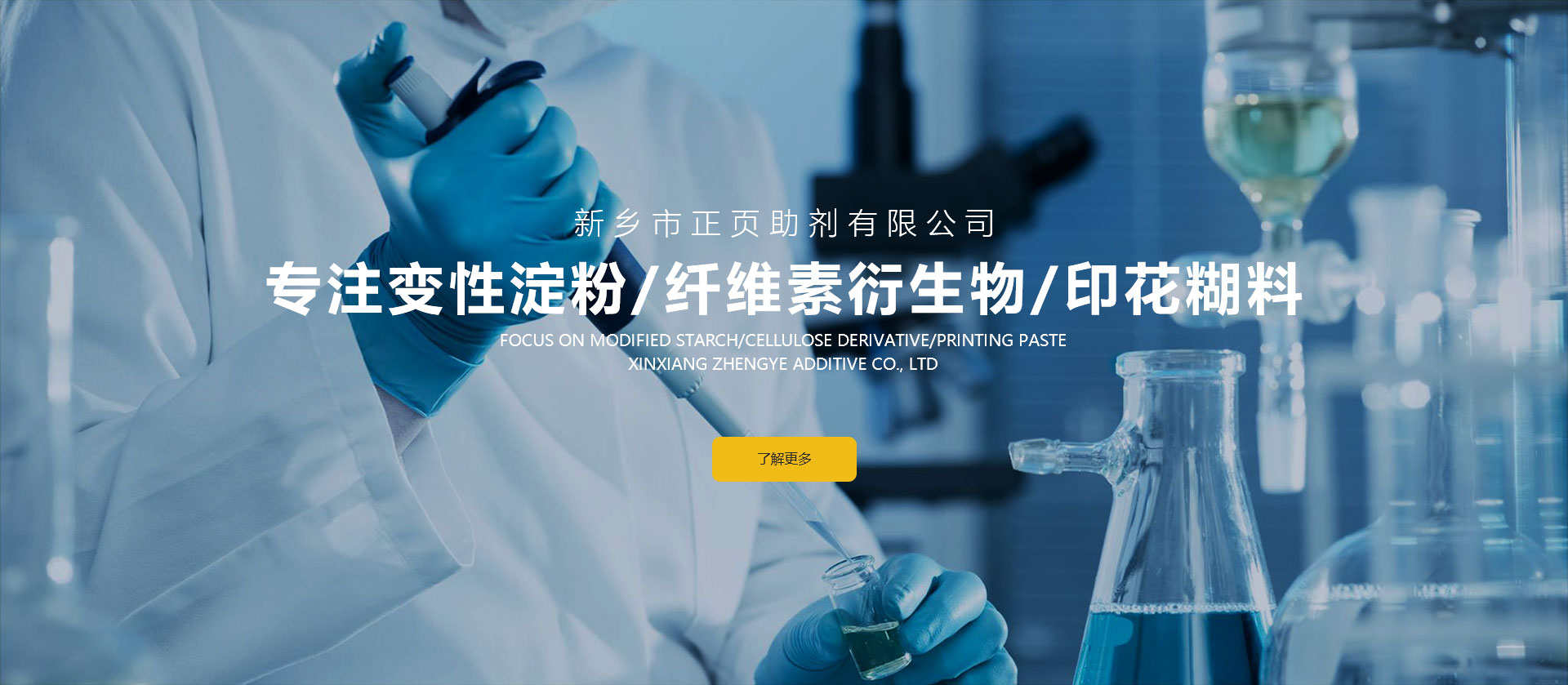 新鄉市正頁助劑有限公司位于河南省新鄉市七里營工業區,主要從事淀粉和纖維素衍生物類產品的開發生產。主要品種有:羧甲基淀粉、羧甲基纖維素、復合變性淀粉、陽離子淀粉、兩性離子淀粉、印花糊料等?! ‘a品介紹: 羧甲基纖維素:用于石油鉆探、造紙涂布、印花糊料、紡織漿料等行業; 羧甲基淀粉:主要用于石油鉆探、印花糊科、造紙.紡織漿料,膩子膠粉等行業; 印花糊料:主要有活性染料印花湖料,分散染料印花糊料,酸性染料印花糊料等; 復合肥無土造粒劑:復臺肥無土造粒劑,純氮球無土造粒劑; 復臺變性淀粉:無土造粒劑,水性密封膠用粘合劑,白乳膠用變性淀粉?! £栯x子淀粉 兩性離子淀粉 我們技術力量和研發能力雄厚,還可根據用戶的具體需求組織研發生產上述各類產品。全體員工以誠信務實的企業宗旨和開拓進取的創業精神,歡迎與各界新老朋友共創輝煌未來。